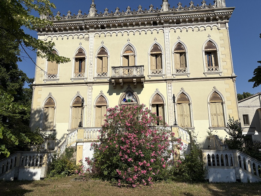 L’Hotel Regina – ex Villa Adele, un elegante edificio in stile Neo-Gotico circondato da un maestoso parco di circa 17.000 mq cui si accede attraverso una bellissima scala in pietra. Fu costruita come residenza nel 1889, come testimonia la data incastonata sul pavimento “alla palladiana” nella Sala Padronale e trasformata negli anni ’50 è stata in Stabilimento Termale al quale è stato successivamente aggiunto il famoso dancing “Ra-Stua”.